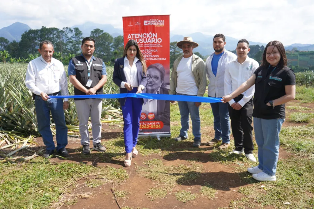 El equipo del Centro de Producción Audiovisual del Servicio Nacional de Emprendimiento y Pequeños Negocios (SENPRENDE) visitó la localidad de Santa Elena, en Santa Cruz de Yojoa, donde se encuentra ubicada la empresa “Hebron”, quien tiene previsto exportar alrededor de 13 mil unidades de piña hacia El Salvador, como parte del proyecto “HONDURAS EMPRENDE, HONDURAS EXPORTA”, una iniciativa respaldada por la presidenta, Xiomara Castro a través de SENPRENDE.