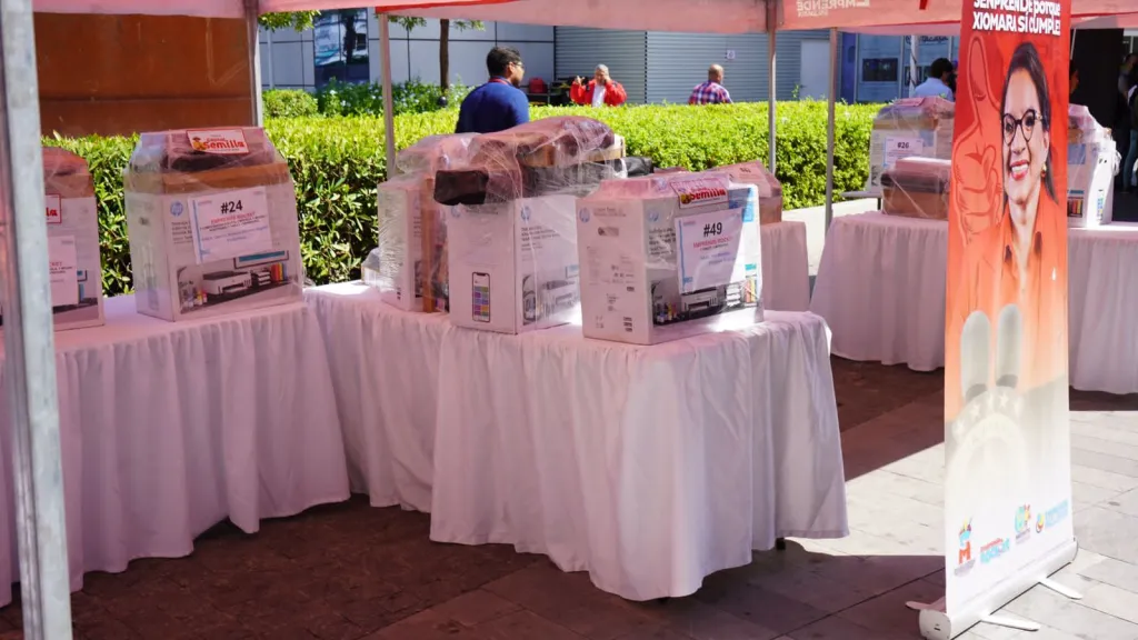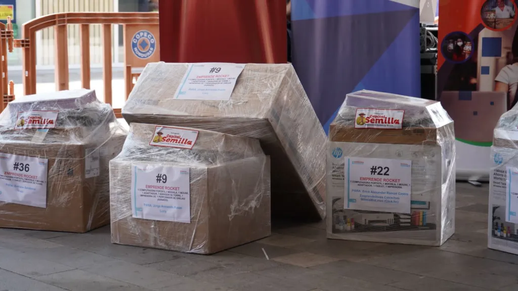 Laptops, tablets, impresoras, servidores, cámaras fotográficas, plotters, un termocoagulador, un dron y un visor de realidad virtual, son parte de los artículos en capital semilla en especie que se están entregando en el evento.